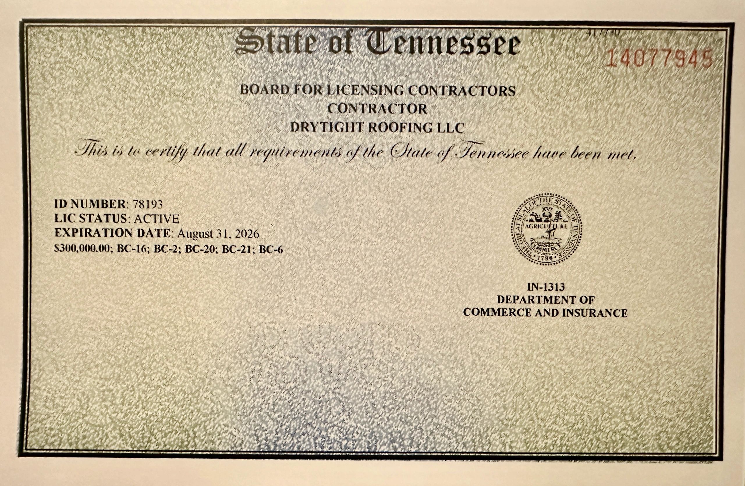 DryTight Roofing is a locally owned and operated general contracting company based in the beautiful town of Cross Plains, TN. Founded in 2020, we specialize in roofing and exterior services across Robertson County and surrounding areas.